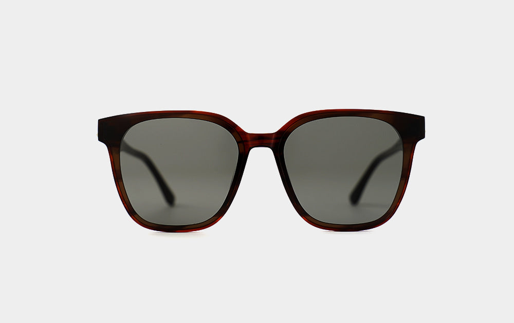 These oversized horn-rimmed sunglasses feature large lenses in both width and height. The flat-bar design allows the front rim and lens to be seamlessly integrated. The metal feldspars on the elongated temples gently cover the sides of the endpiece when the temples are extended, creating a sense of unity. The sophisticated design makes them ideal for wearing as fashion sunglasses.