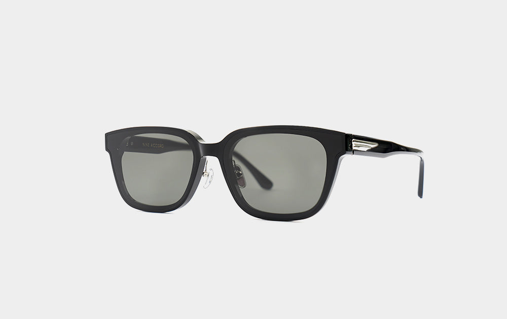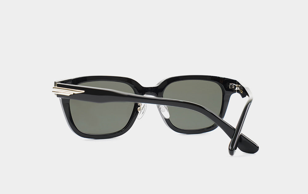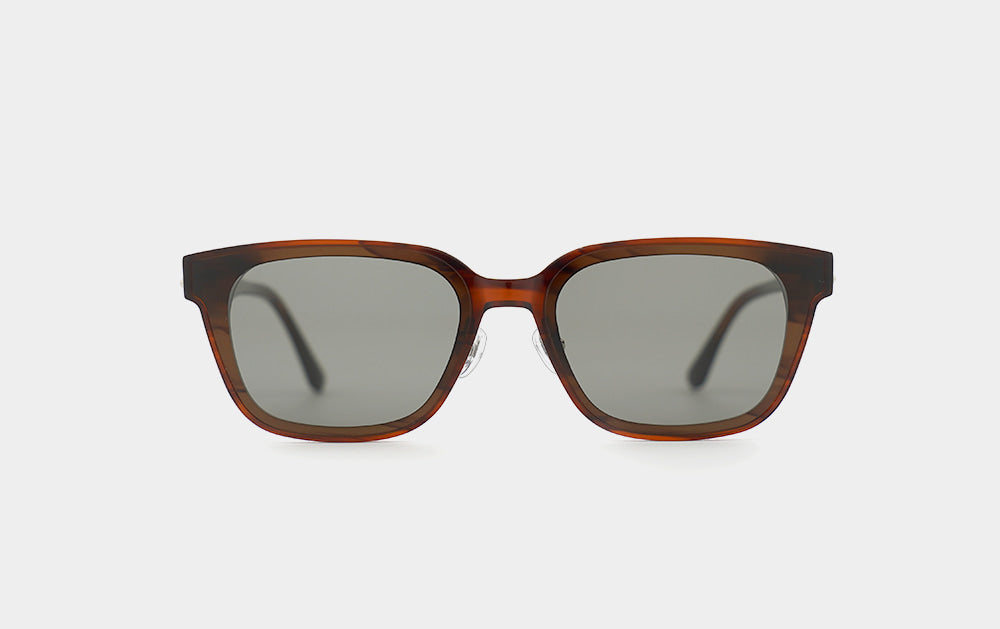 These flat-bar sunglasses are rectangular in shape. The lenses are shorter in height than in width, creating a geek-chic style. Despite being horn-rimmed, they feature a nose bridge and nose pads for a custom fit. While they feel a bit heavy, as is typical of horn-rimmed sunglasses, they are well-balanced and comfortable to wear for extended periods.