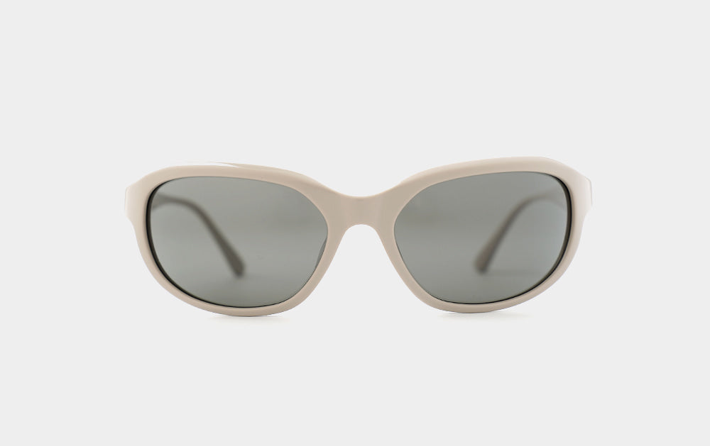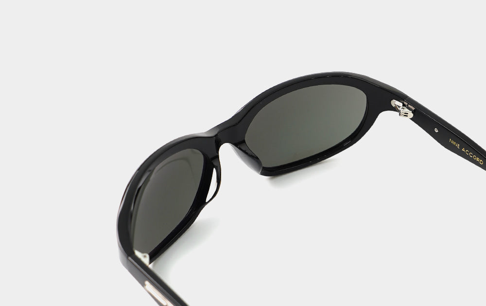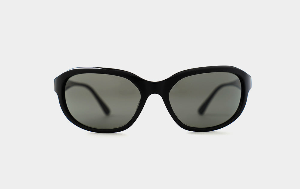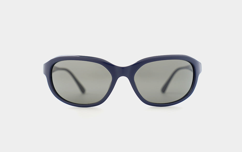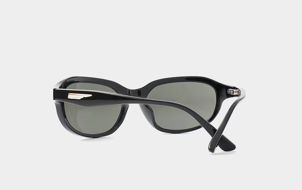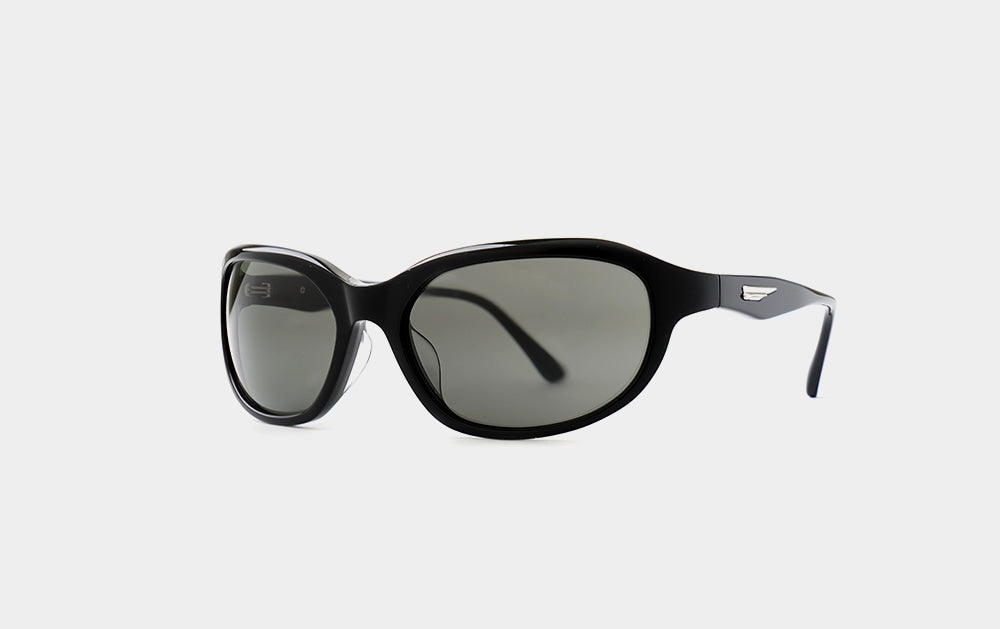 These oversized, horn-rimmed sunglasses are goggle-style. The wide frame and soft curves create a natural, contoured look. The temples are wide and tapered, creating a perfectly balanced silhouette. Wing-shaped metal feldspars set into each temple add a touch of sophistication.