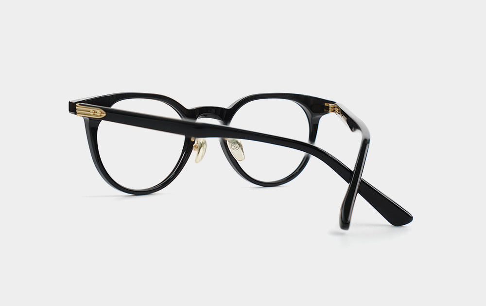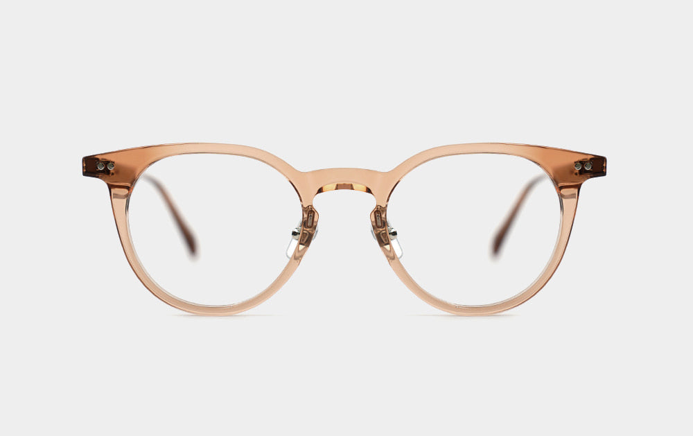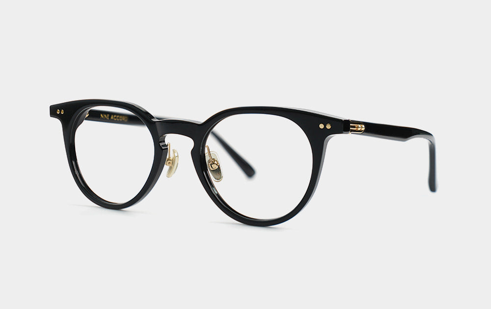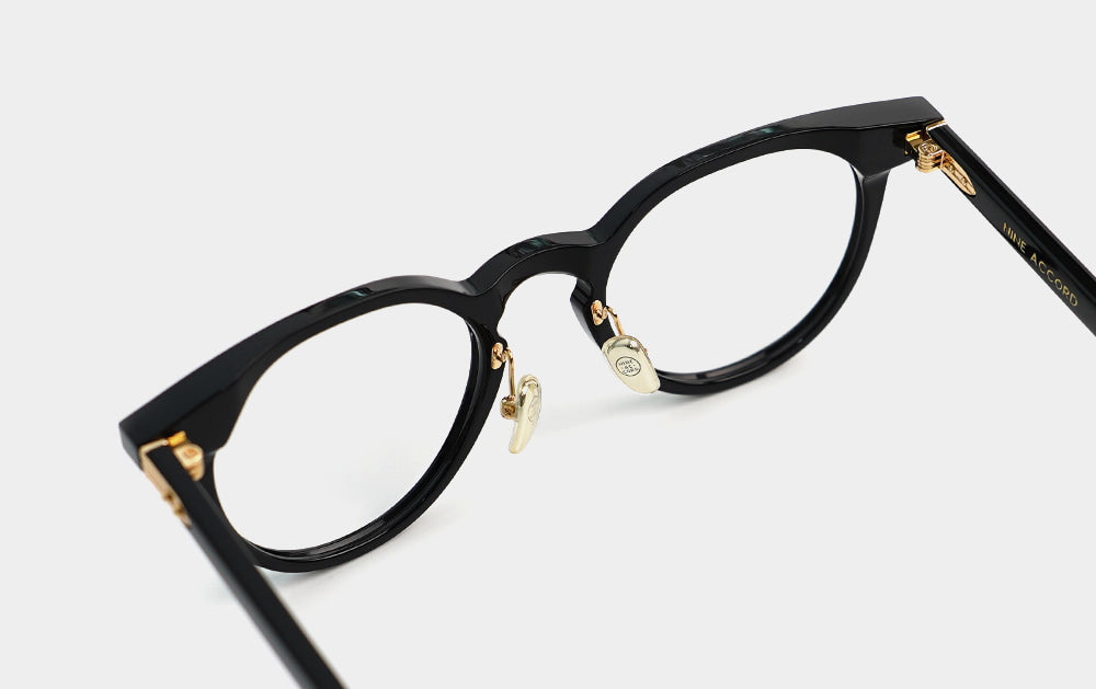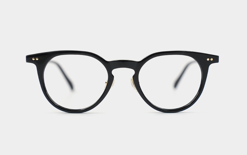 These are round horn-rimmed glasses with a basic design. The end piece is slightly lowered, giving a soft impression. The metal feldspar on the end piece and the temple adds a luxurious feel. Although it is a horn-rimmed glasses, it has a separate nose pad, making it comfortable to wear.