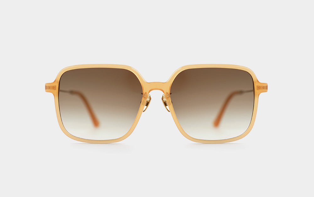 This is a slightly smaller version of the existing Kissing LULU model. It is a combination sunglass with a horn-rimmed front and metal temples. Although the front is horn-rimmed, the rim is thin, and the temples are also thin, so they are not heavy when worn. The temple tips are thicker than the temples, providing a stable fit.