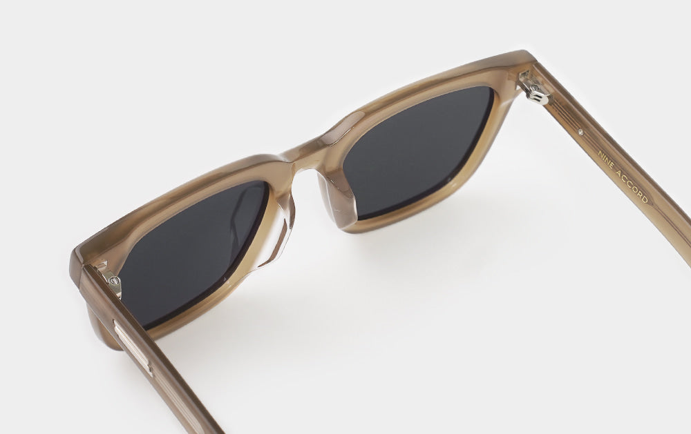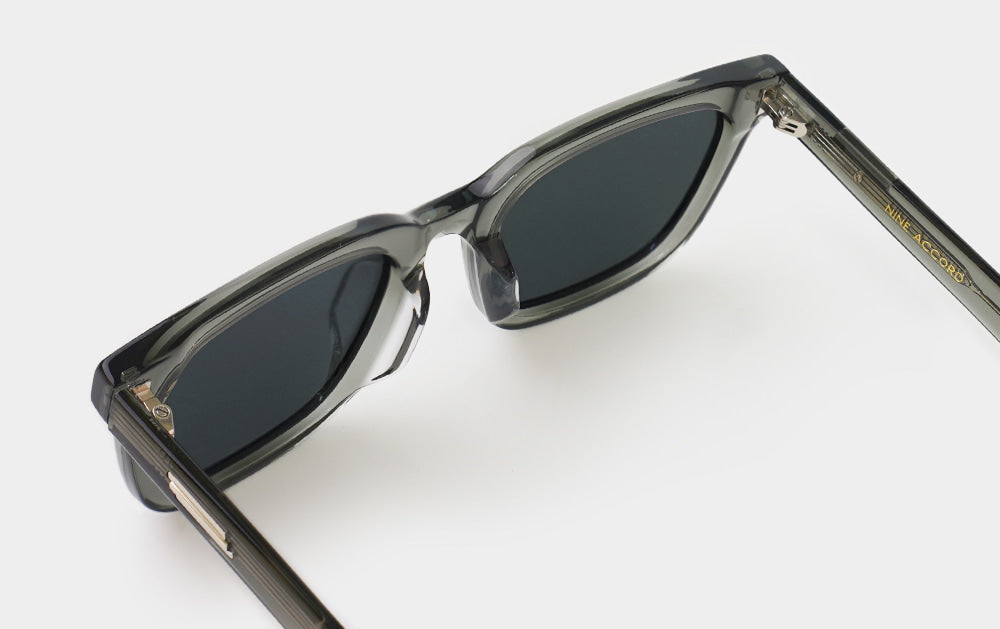 These basic sunglasses feature a simple design, making them ideal for daily wear. Crafted from acetate, they offer a stable and comfortable fit with just the right amount of weight. The metal detailing with the Nine Accord initials engraved on the outer side of the temples adds a touch of luxury.