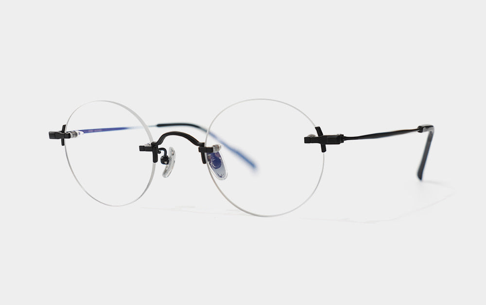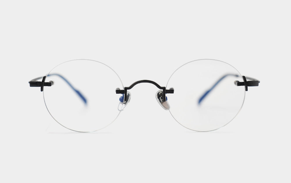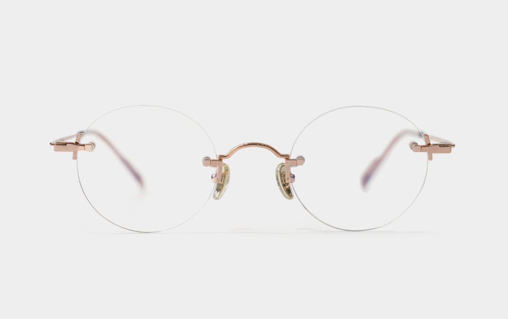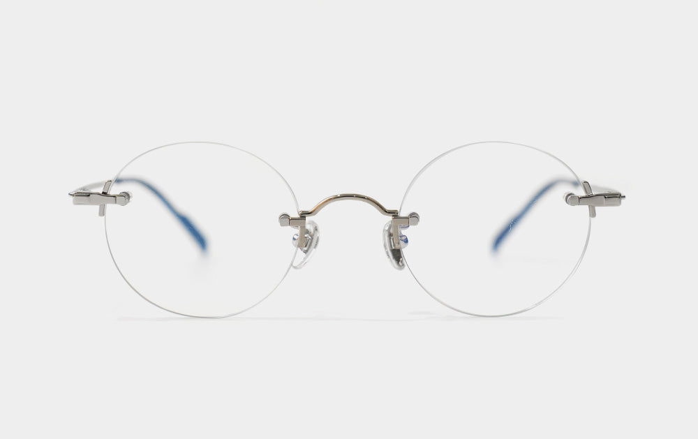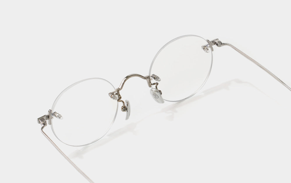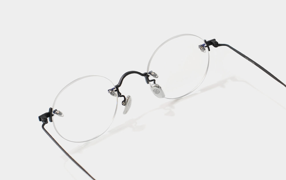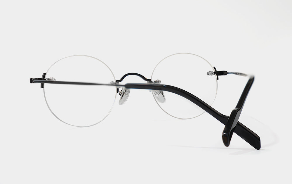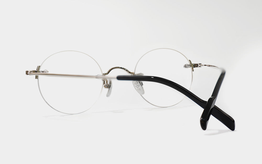 This is one of the first Mute series. It has a small, round lens shape. The bridge is also cutely designed with a convex shape upwards, giving it the feel of Kim Koo glasses. Since it is Mute, the lens-bridge and lens-temperature are directly connected by screws. A silicone cap is placed to ensure safety from protruding screws.