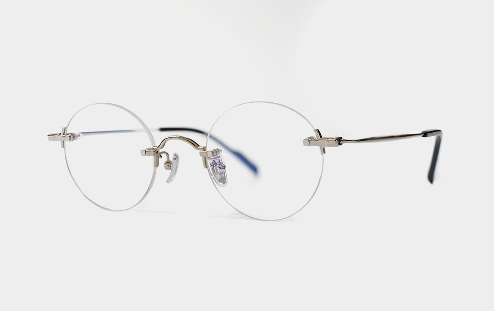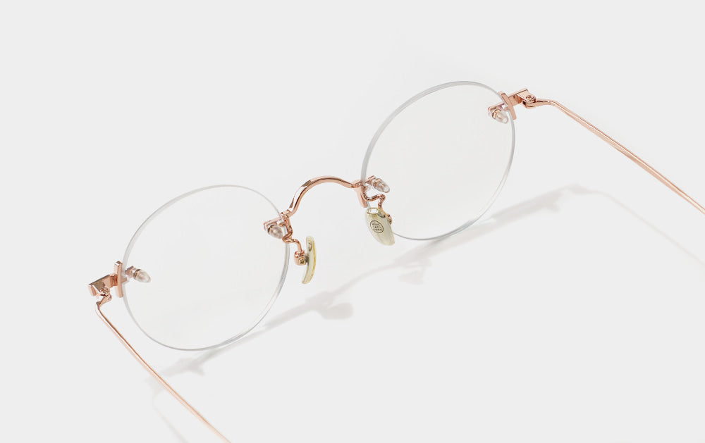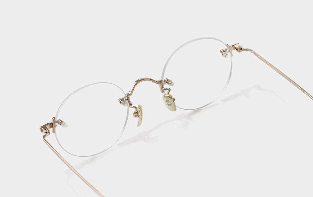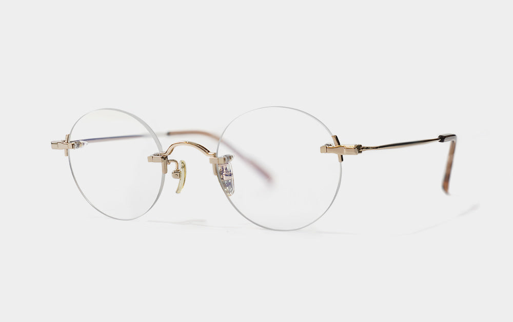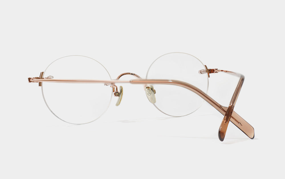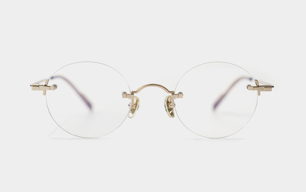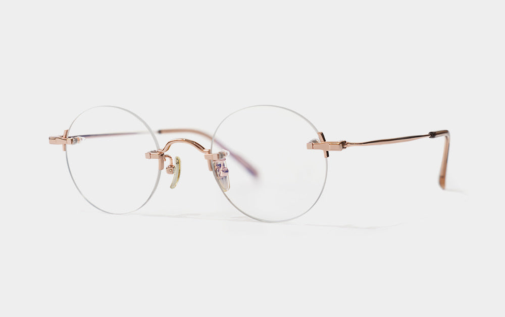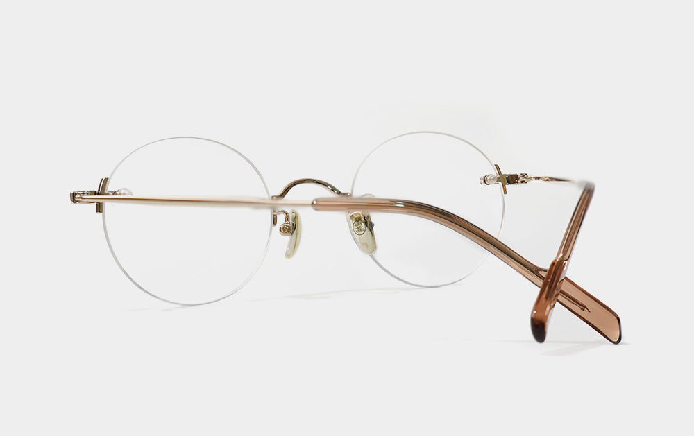 This is one of the first Mute series. It has a small, round lens shape. The bridge is also cutely designed with a convex shape upwards, giving it the feel of Kim Koo glasses. Since it is Mute, the lens-bridge and lens-temperature are directly connected by screws. A silicone cap is placed to ensure safety from protruding screws.