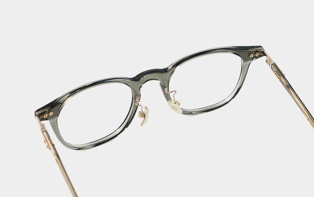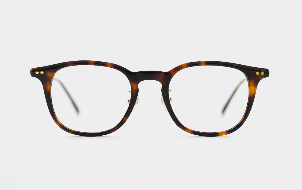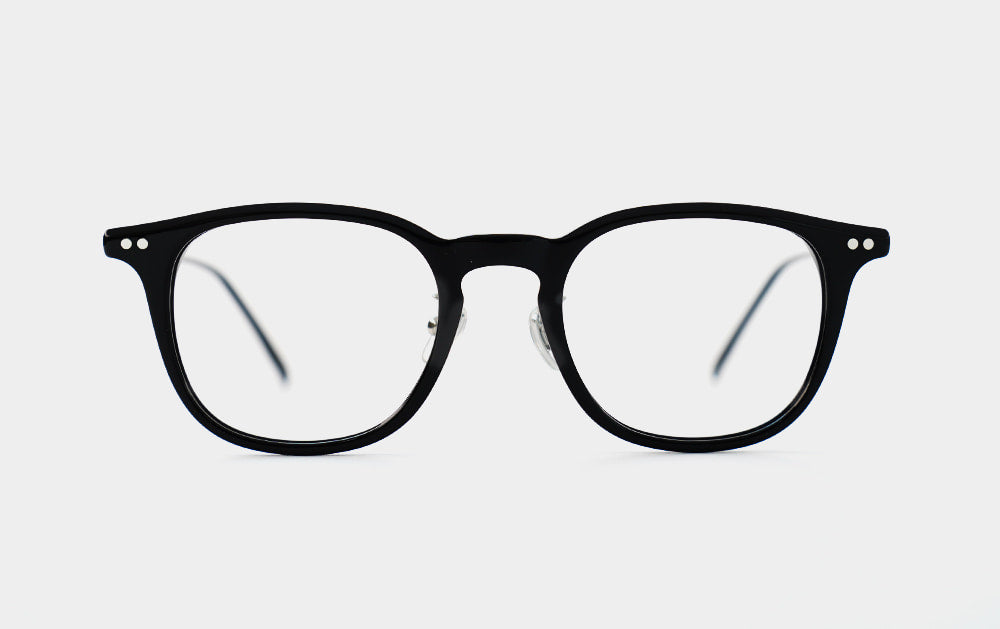 These are basic design combination glasses. At first glance, they look like thin horn-rimmed glasses, but they are a combination design with a titanium metal hinge connecting the front and the bridge. They come with a nose bridge and silicone nose pads for a custom fit.