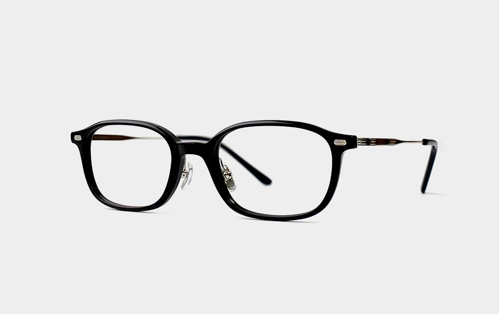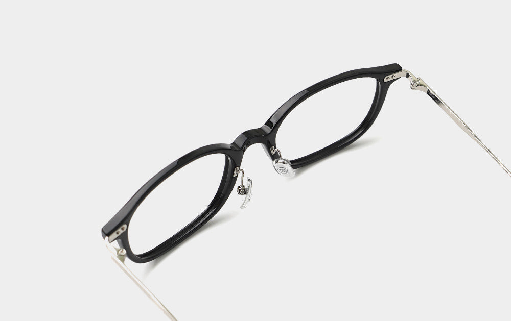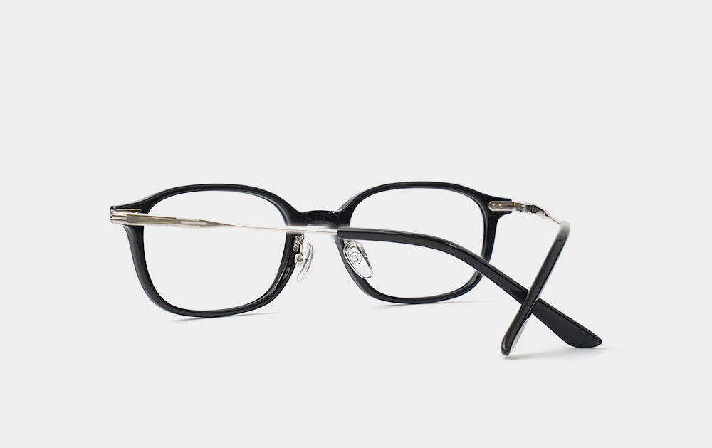 These pairs feature a softly curved rectangular lens. The front is made of thin horn-rimmed frames, and the temples are made of durable and resilient beta-titanium. The front end features a rounded rectangular metal feldspar with grooves for a striking design. The nose pads allow for a custom fit to your face shape.